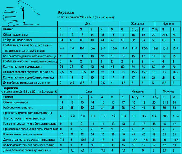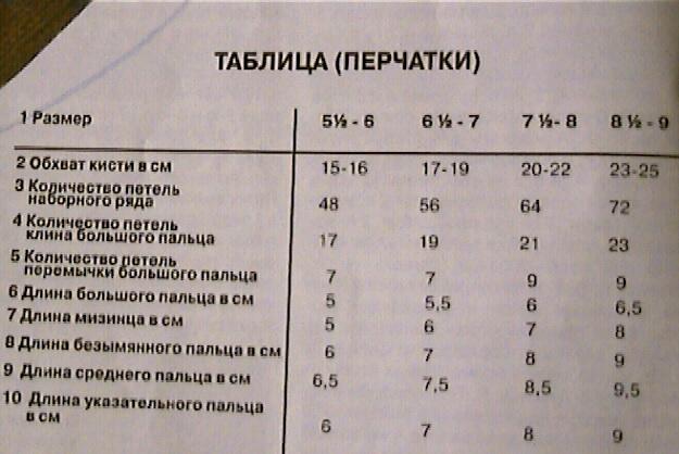 When knitting mittens and gloves do not always have the opportunity to take your measurements with a "customer".In such cases, the size of the table are very useful: